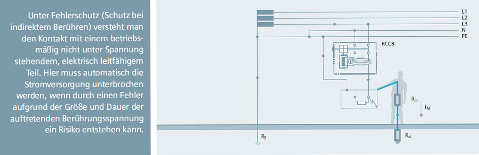 Beim Betrieb elektrischer Anlagen können erhebliche Gefahren für Personen und Sachwerte entstehen. Ob durch direktes Berühren betriebsmäßig unter Spannung stehender Teile oder durch indirektes Berühren von Anlageteilen und Betriebsmitteln, die wegen eines Fehlers Spannung gegen Erde führen – der Schutz wird vor allem durch schnelles Abschalten erreicht.