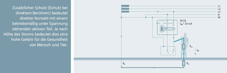 In vielen Fällen schreiben die DIN VDE-Bestimmungen den Einsatz von Fehlerstrom-Schutzeinrichtungen zwingend vor. Diese bieten neben dem Fehlerschutz bei Verwendung von FI-Schutzschaltern mit IΔn ≤30 mA auch „zusätzlichen Schutz“ bei direktem Berühren. Sie verhindern durch rasche Abschaltung gefährlich hohe Fehlerströme gegen Erde und tragen so maßgeblich zur Reduzierung lebensgefährlicher Stromunfälle in Niederspannungsnetzen bei. Elektrisch gezündete Brände durch Erdschlussströme können bereits im Entstehen verhindert werden. Der standardmäßig enthaltende Umgreif- und Berührungsschutz sorgt für zuverlässige Sicherheit bei der Montage.