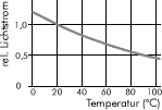 Abhängigkeit des Lichtstromes von der Umgebungs-temperatur für AlInGaP LED. Die Abhängigkeit ist bei InGaP LED nicht so deutlich. |