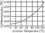 Abhängigkeit der Lichttemperatur von der Temperatur in der lichterzeugenden Schicht des Halbleiters (Junction-Temperatur) bei weißen LED |