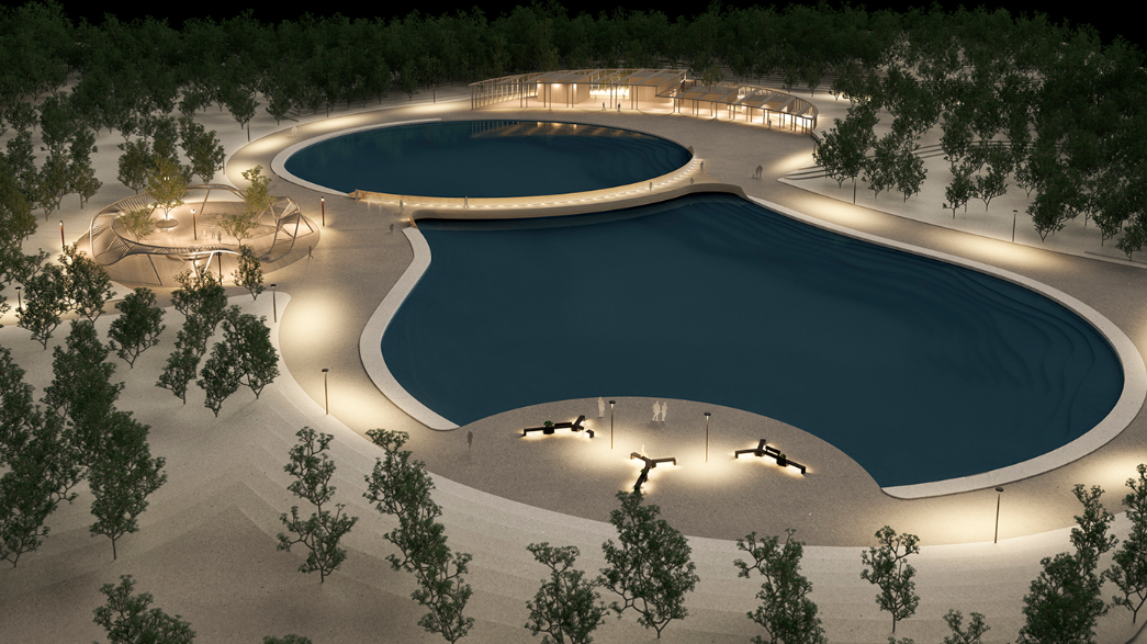 Der Park, dessen Beleuchtung vom zentral gelegenen Rechner aus überwacht und gesteuert werden kann