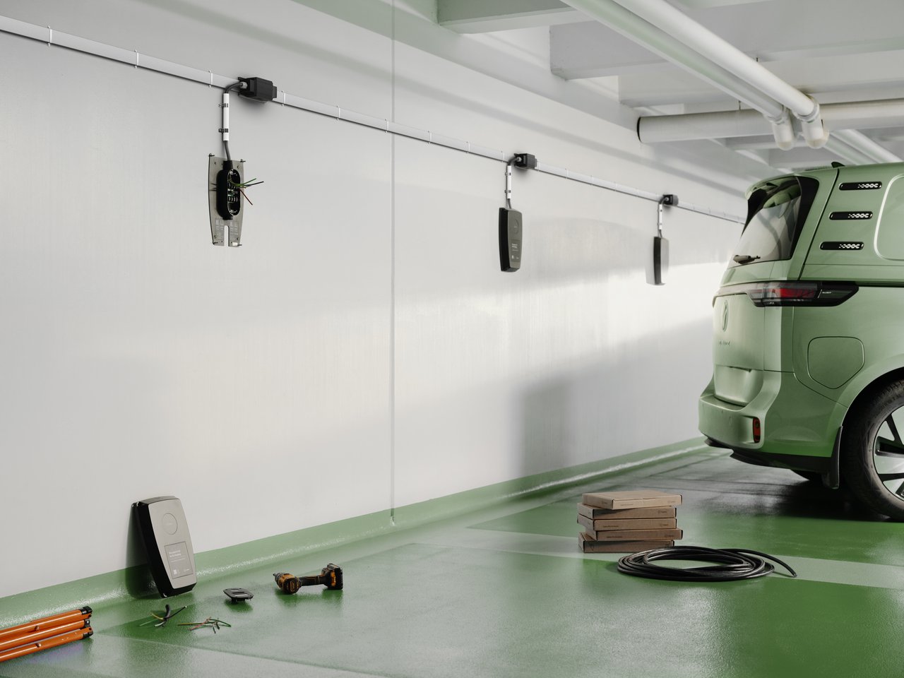 Das System funktioniert für Wechselstrom-Ladestationen bis 22 kW. Die Kommunikation zu den Wallboxen läuft je nach Modell parallel zur Flachleitung oder über WLAN. Das Lastmanagement verteilt die verfügbare Energie und gleicht die Phasen aus.