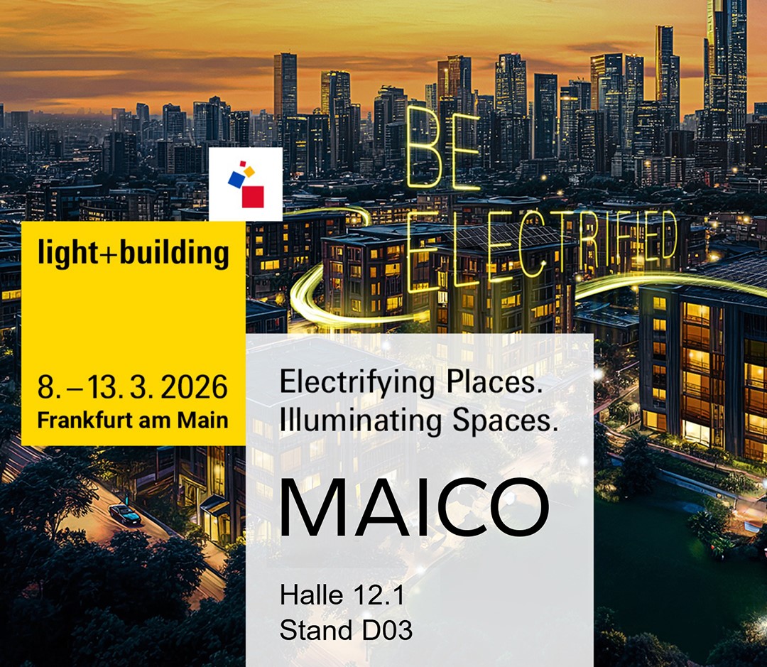 Erstmals erlebbar wird das neue Erscheinungsbild vom 8.-13. März 2026 auf der Light + Building, der internationalen Leitmesse für Licht- und Gebäudetechnik in Frankfurt. In Halle 12.1, Stand D03 präsentiert sich MAICO im neuen Look und zeigt, wie die Gruppe ihre Markenidentität in eine moderne, globale Zukunft führt.