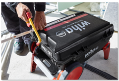 Dauergrinsen vorprogrammiert! Der Werkzeugtransport auf noch so unwegsamen Baustellen wird jetzt zum Kinderspiel. Treppen, unwegsames Gelände? Keine Leiter, Sitzmöglichkeit, Werkbank parat? Knifflige Kabelverarbeitungs- oder Schraubarbeiten? Voll ausgestattet und doch schwerelos nimmt der neue Wiha Elektriker Werkzeugkoffer XXL III nun jede Hürde - und zwar so...