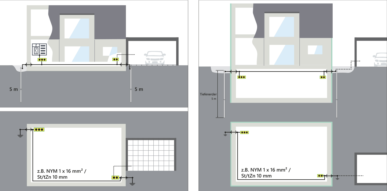 Hinweis: Für Gebäude bis zu 200 m² Grundfläche sind zwei Sets erforderlich um die normativen Vorgaben der DIN 18014 (zwei Tiefenerder mit jeweils 5 m) zu erfüllen.