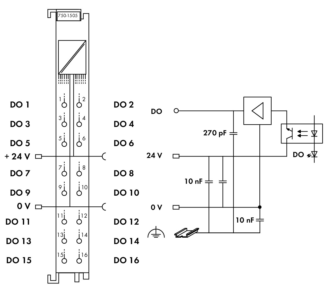 16-Kanal-Digitalausgang; DC 24 V; 0,5 A; Negativschaltend