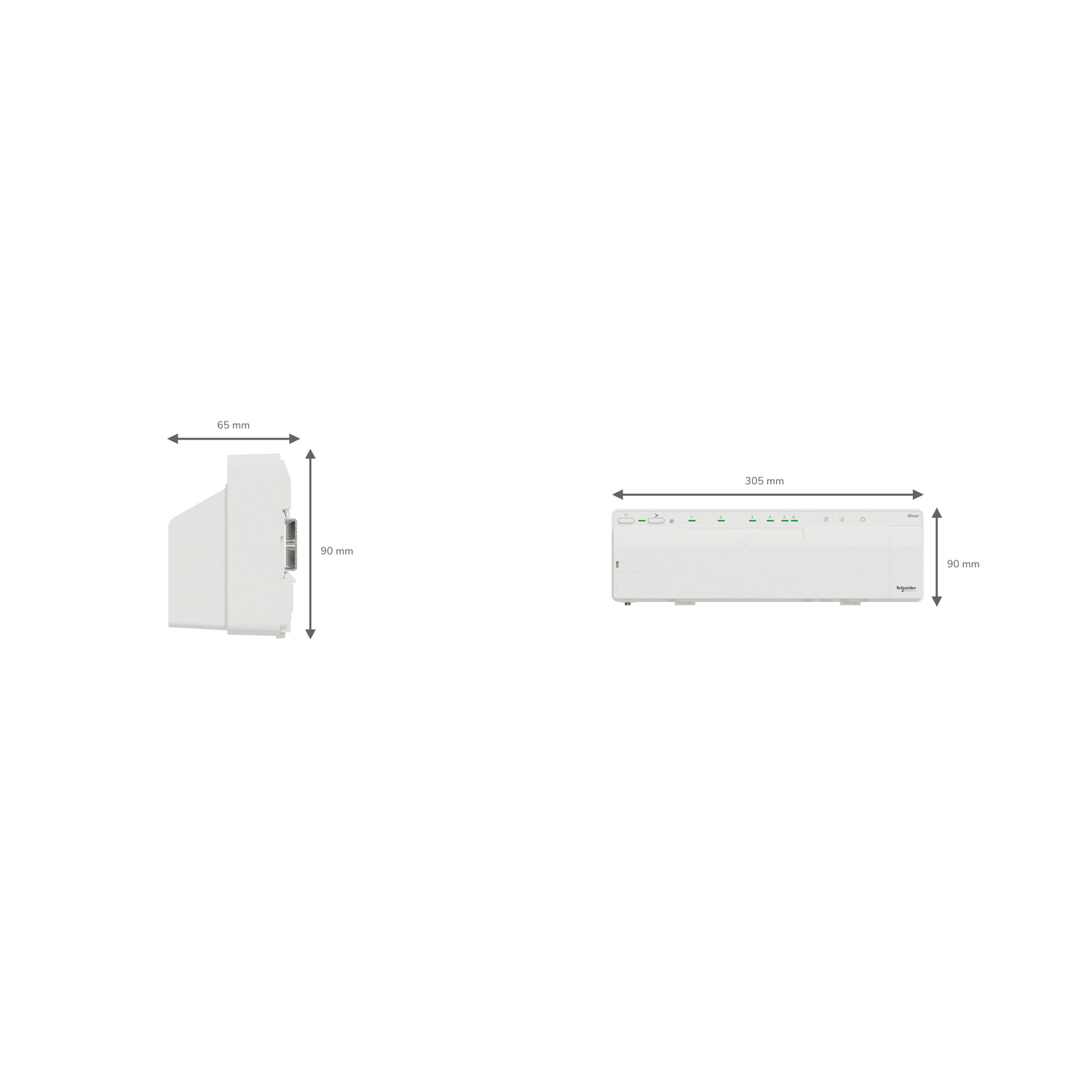 Wiser Verteilerleiste regelt die Ventile der Fußbodenheizung für die Wiser-Heizungssteuerung (Zigbee). Smartes Mehrzonen-Regelsystem für Fußbodenheizsysteme. Bis zu 64 Geräte inklusive Hub können über ein System verbunden werden. Weitere Details in der Online-Dokumentation. 305 x 90 x 65 mm. Modulare Smart Home Anbindung über das Wiser-System, APP-Steuerung vor Ort und aus der Ferne, Zeitpläne, Momente (Szenen) und Automatisierungen per Wiser Home APP. Zigbee 3.0. Kompatible Ventil-Adapter notwendig. Einfache Wandmontage, zusätzliche Antenne für Zigbee-Vernetzung mit dem Haussystem. System-Konfiguration über die Wiser Home-APP (Online und Offline!), Zusätzliche Installationsunterstützung über eSetup-APP für den qualifizierten Elektriker.