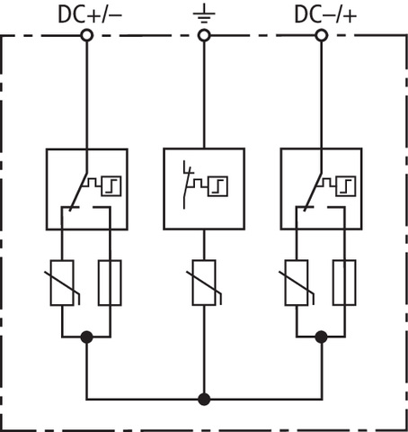 Mehrpoliger Überspannungsableiter DEHNguard YPV SCI, Typ 2 nach EN 61643-31 mit dreistufiger DC-Schaltvorrichtung. Kombinierte Abtrenn- und Kurzschließvorrichtung mit sicherer elektrischer Trennung im Schutzmodul. Zum Schutz von Niederspannungs-Verbraucheranlagen vor Überspannungen. Zum Einsatz gemäß IEC 60364-7-712:2002-05 (Errichten von Photovoltaik-Versorgungssystemen).